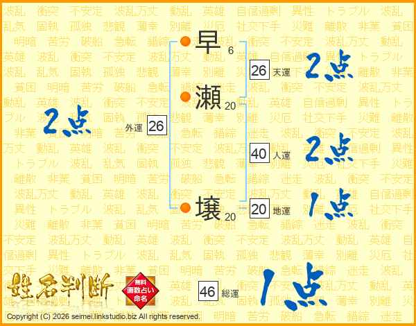 早瀬壌さんの天運は26画の2点!