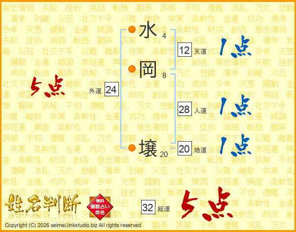 水岡壌さんの総運は32画の5点!
