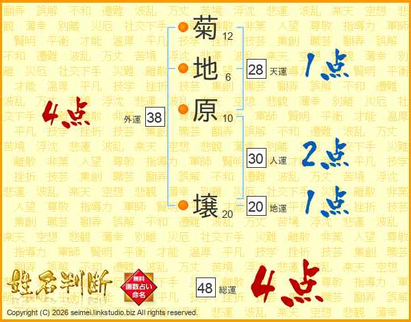菊地原壌さんの総運は48画の4点!