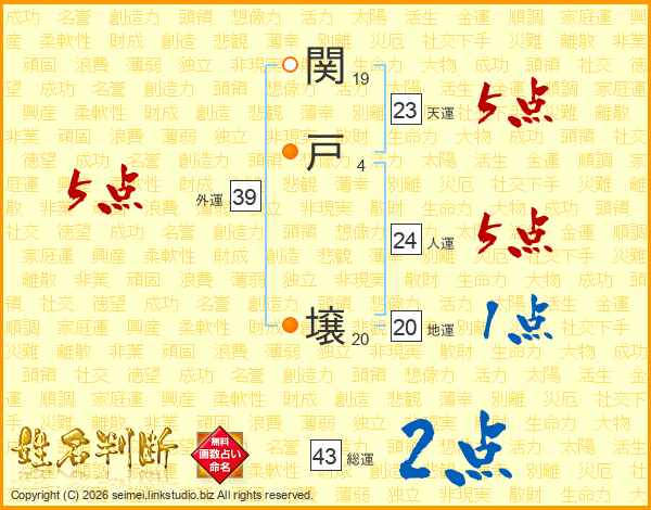 関戸壌さんの外運は39画の5点!