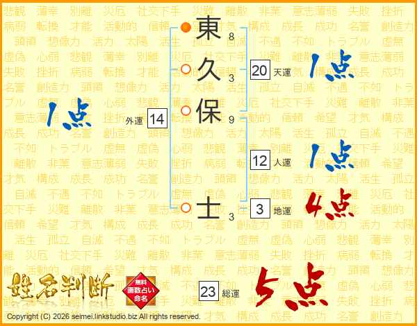 東久保士さんの天運は20画の1点!
