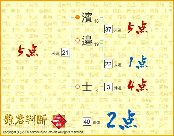 濱邉士さんの総運は40画の2点!
