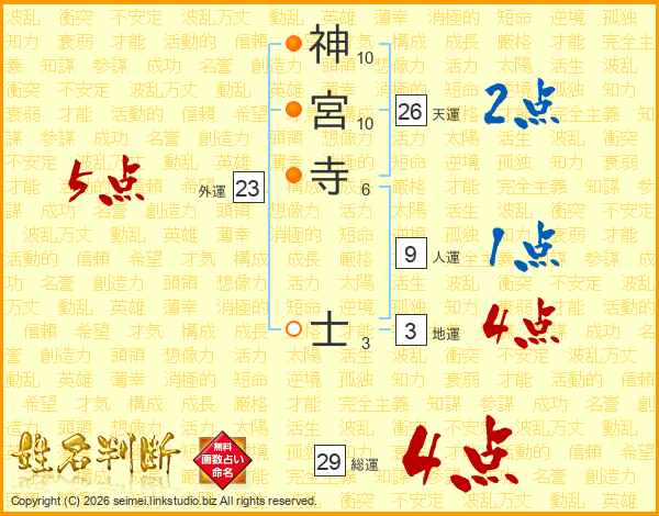 神宮寺士さんの総運は29画の4点!