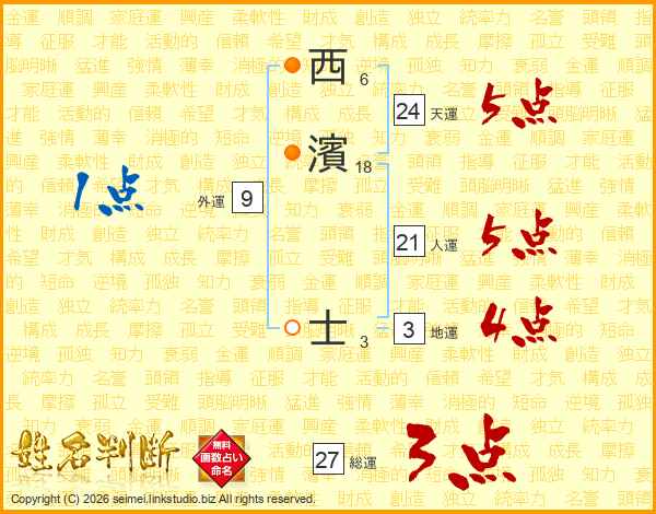 西濱士さんの総運は27画の3点!