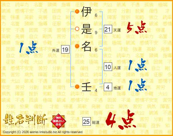 伊是名壬さんの天運は21画の5点!
