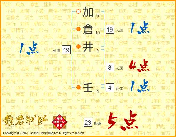 加倉井壬さんの総運は23画の5点!