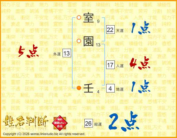 室園壬さんの総運は26画の2点!