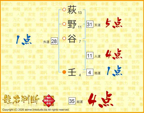 萩野谷壬さんの総運は35画の4点!