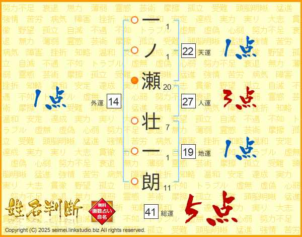 一ノ瀬壮一朗さんの総運は41画の5点!