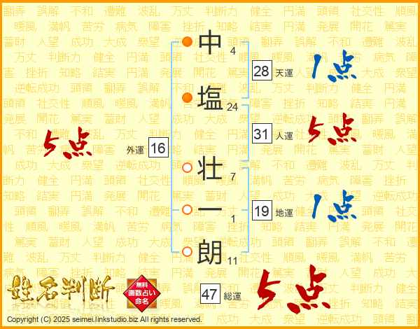 中塩壮一朗さんの人運は31画の5点!