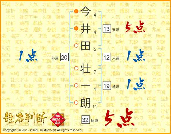 今井田壮一朗さんの総運は32画の5点!