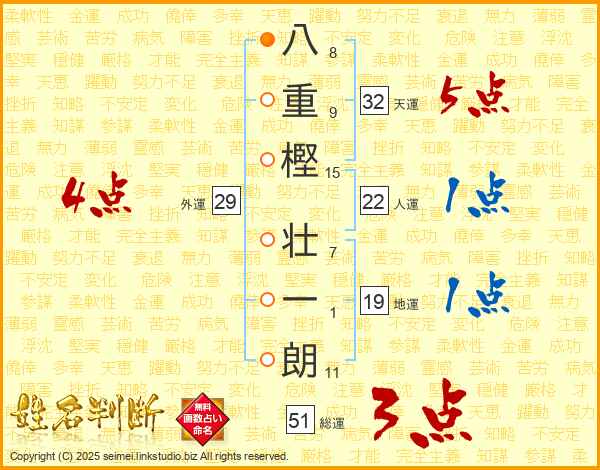八重樫壮一朗さんの総運は51画の3点!