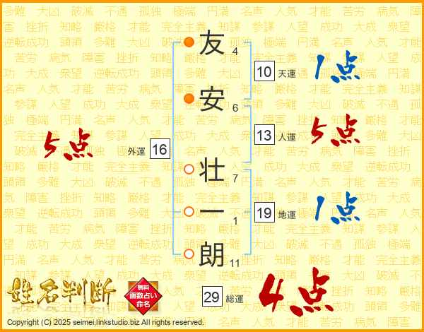 友安壮一朗さんの総運は29画の4点!