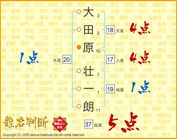 大田原壮一朗さんの総運は37画の5点!