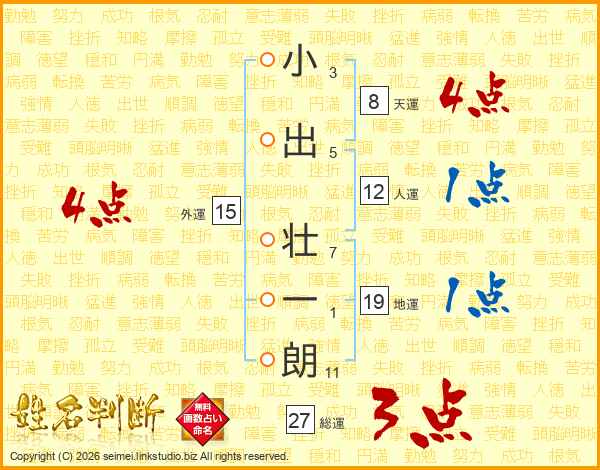 小出壮一朗さんの総運は27画の3点!
