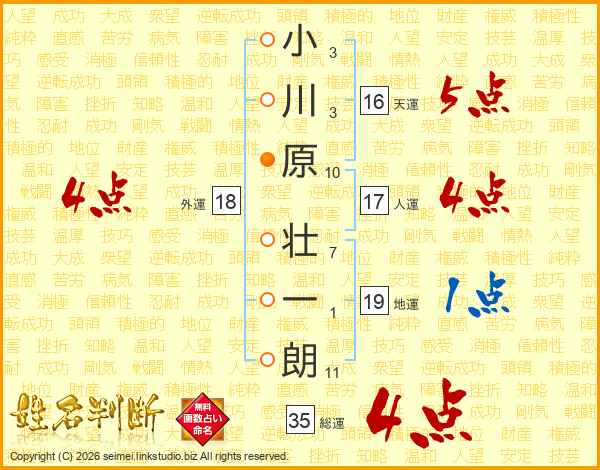 小川原壮一朗さんの人運は17画の4点!