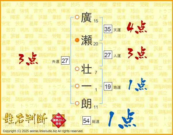 廣瀬壮一朗さんの総運は54画の1点!