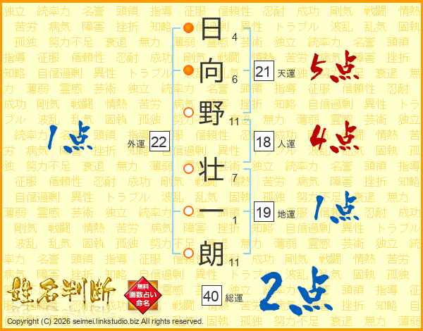 日向野壮一朗さんの天運は21画の5点!