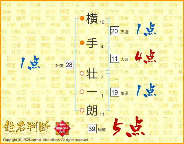 横手壮一朗さんの総運は39画の5点!
