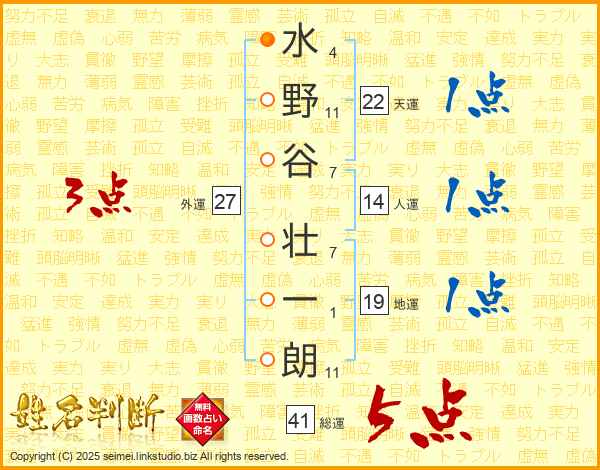 水野谷壮一朗さんの総運は41画の5点!