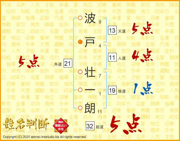 波戸壮一朗さんの総運は32画の5点!