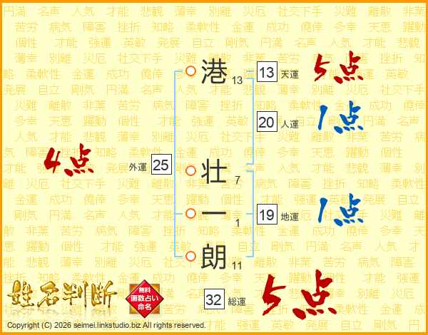 港壮一朗さんの天運は13画の5点!