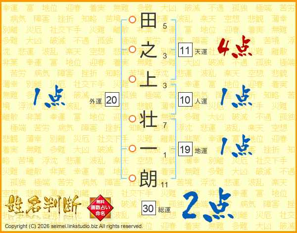 田之上壮一朗さんの天運は11画の4点!