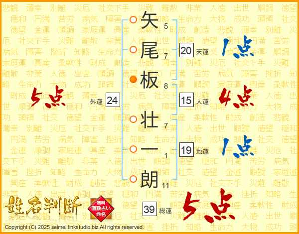 矢尾板壮一朗さんの総運は39画の5点!