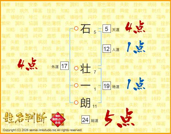 石壮一朗さんの総運は24画の5点!