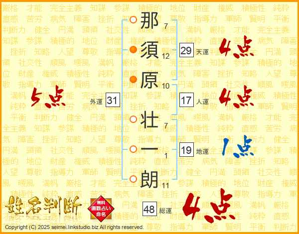 那須原壮一朗さんの総運は48画の4点!