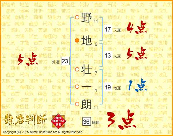 野地壮一朗さんの人運は13画の5点!