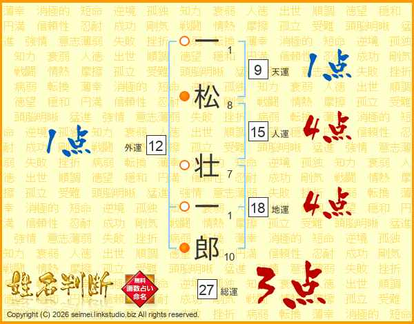 一松壮一郎さんの総運は27画の3点!
