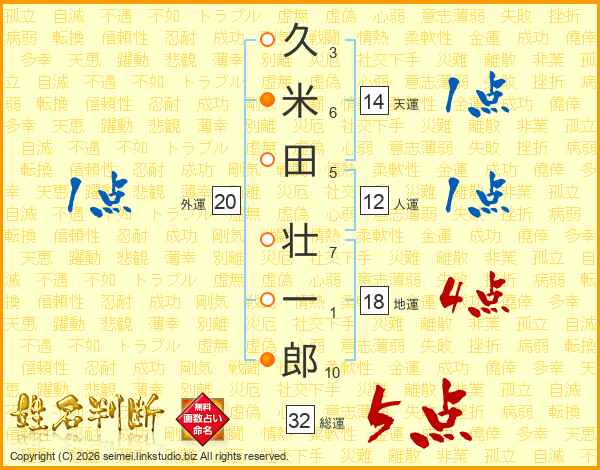 久米田壮一郎さんの総運は32画の5点!