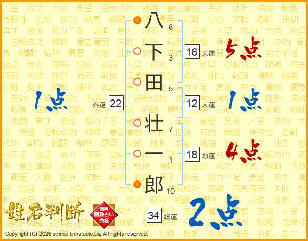 八下田壮一郎さんの総運は34画の2点!