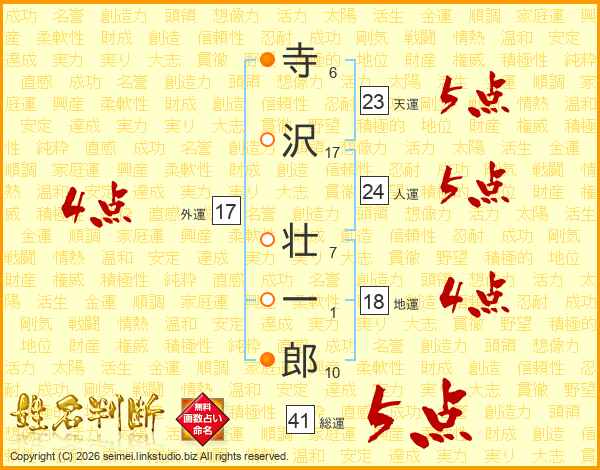 寺沢壮一郎さんの外運は17画の4点!