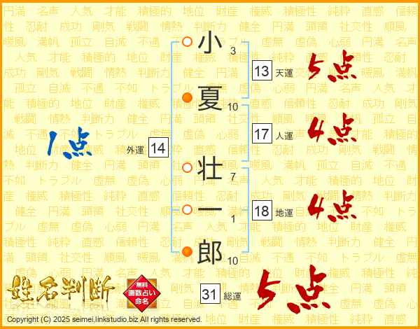 小夏壮一郎さんの総運は31画の5点!