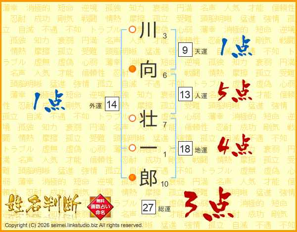 川向壮一郎さんの人運は13画の5点!
