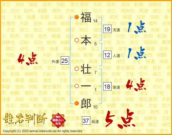 福(14画)本(5画) 壮(7画)一(1画)郎(10画)