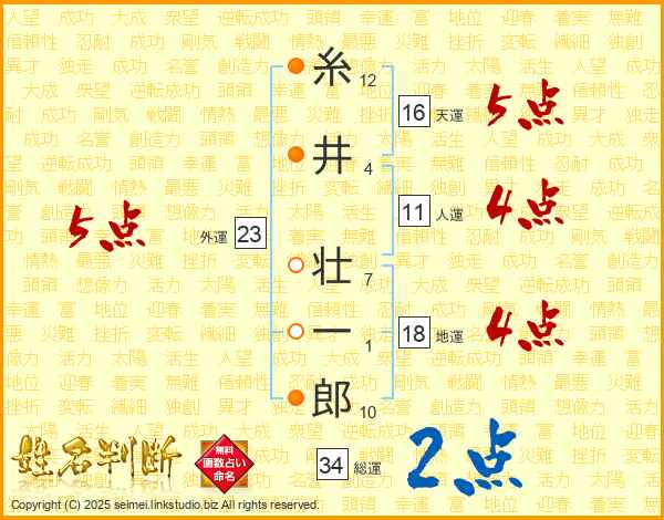 糸(12画)井(4画) 壮(7画)一(1画)郎(10画)