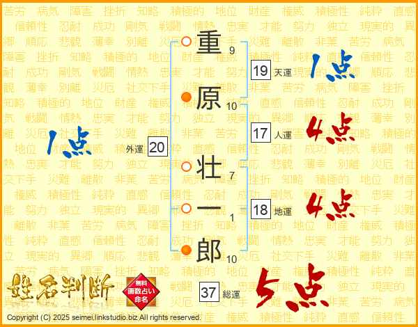 重(9画)原(10画) 壮(7画)一(1画)郎(10画)