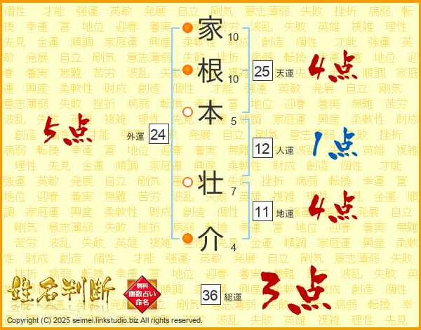 家根本壮介さんの天運は25画の4点!