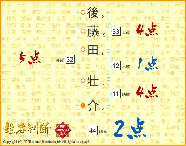 後(9画)藤(19画)田(5画) 壮(7画)介(4画)