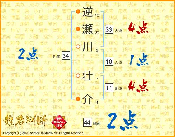 逆瀬川壮介さんの総運は44画の2点!