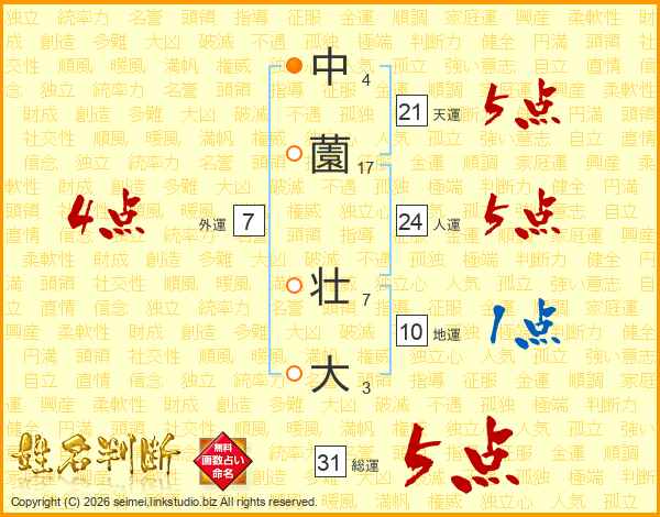 中薗壮大さんの天運は21画の5点!
