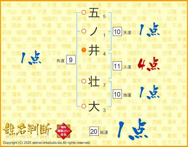 五ノ井壮大さんの総運は20画の1点!