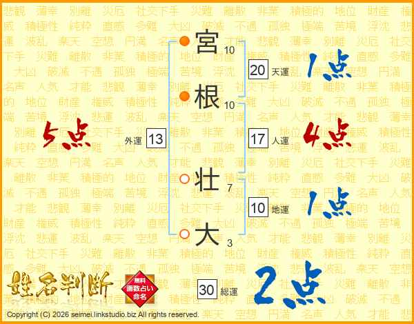 宮根壮大さんの外運は13画の5点!
