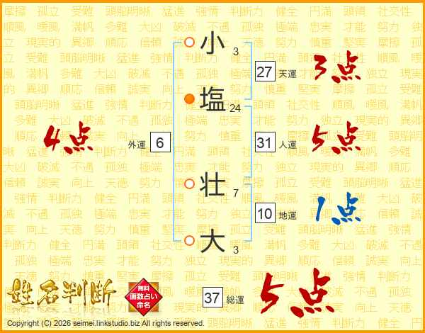 小塩壮大さんの総運は37画の5点!