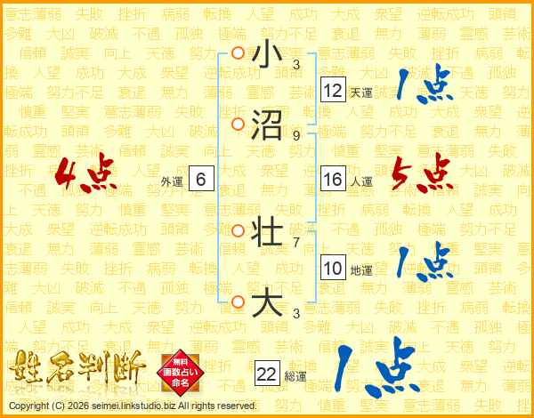 小沼壮大さんの人運は16画の5点!
