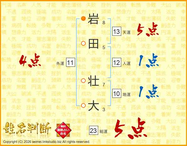岩田壮大さんの天運は13画の5点!