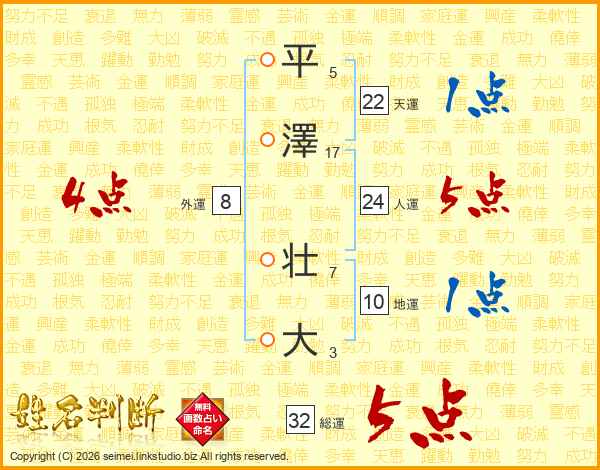 平澤壮大さんの総運は32画の5点!